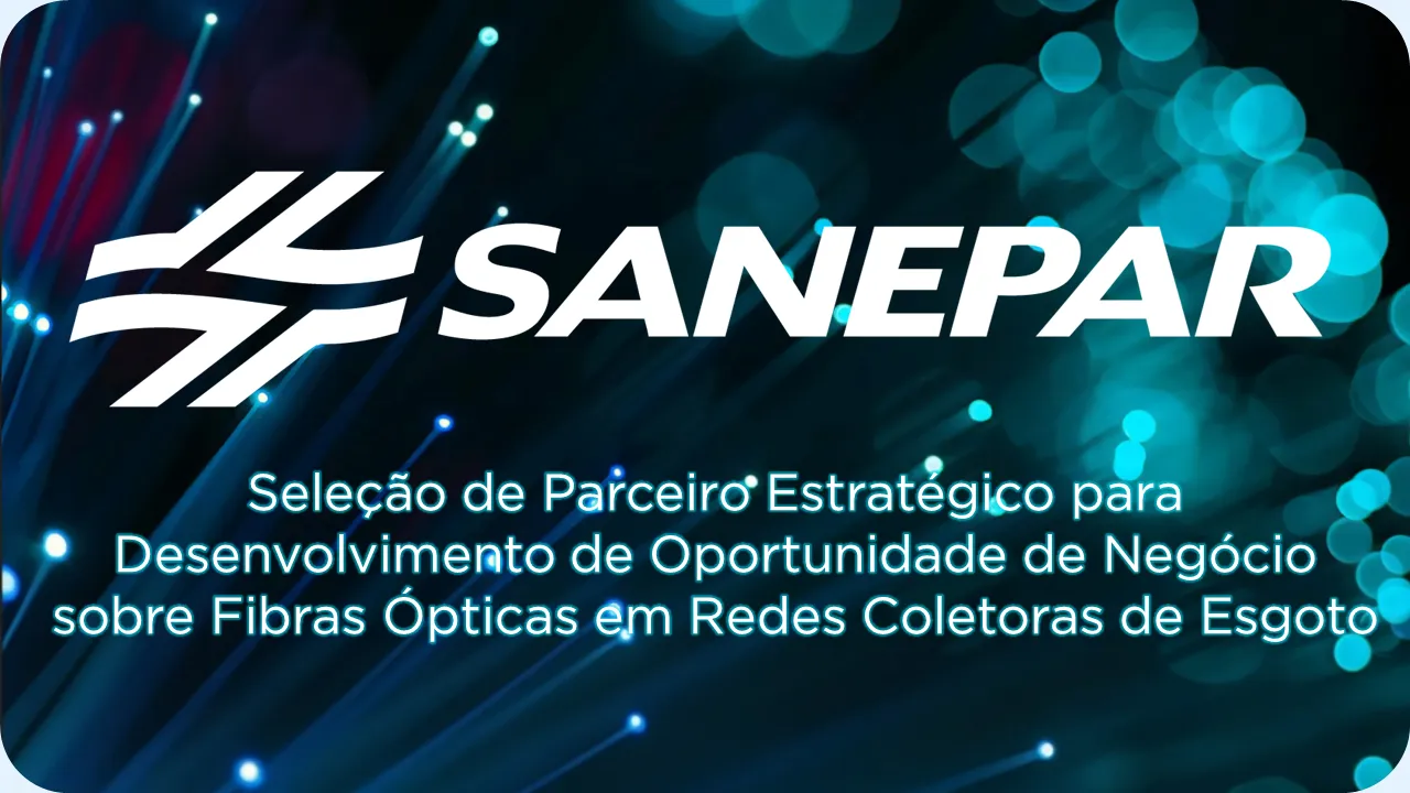 A Companhia de Saneamento do Paraná conduz um processo para selecionar um parceiro estratégico com quem desenvolver, de forma colaborativa, um modelo de negócio de fibra óptica subterrânea apoiado em sua rede coletora de esgoto. O projeto prevê etapas que iniciam com a implementação de um piloto em área delimitada para validar, em condições reais, aspectos técnicos, regulatórios e de mercado definidos conjuntamente. A partir dessa validação, e conforme a convergência dos resultados com as expectativas das partes, poderá evoluir para estrutura societária (JV/SPE) para implantação em escala.